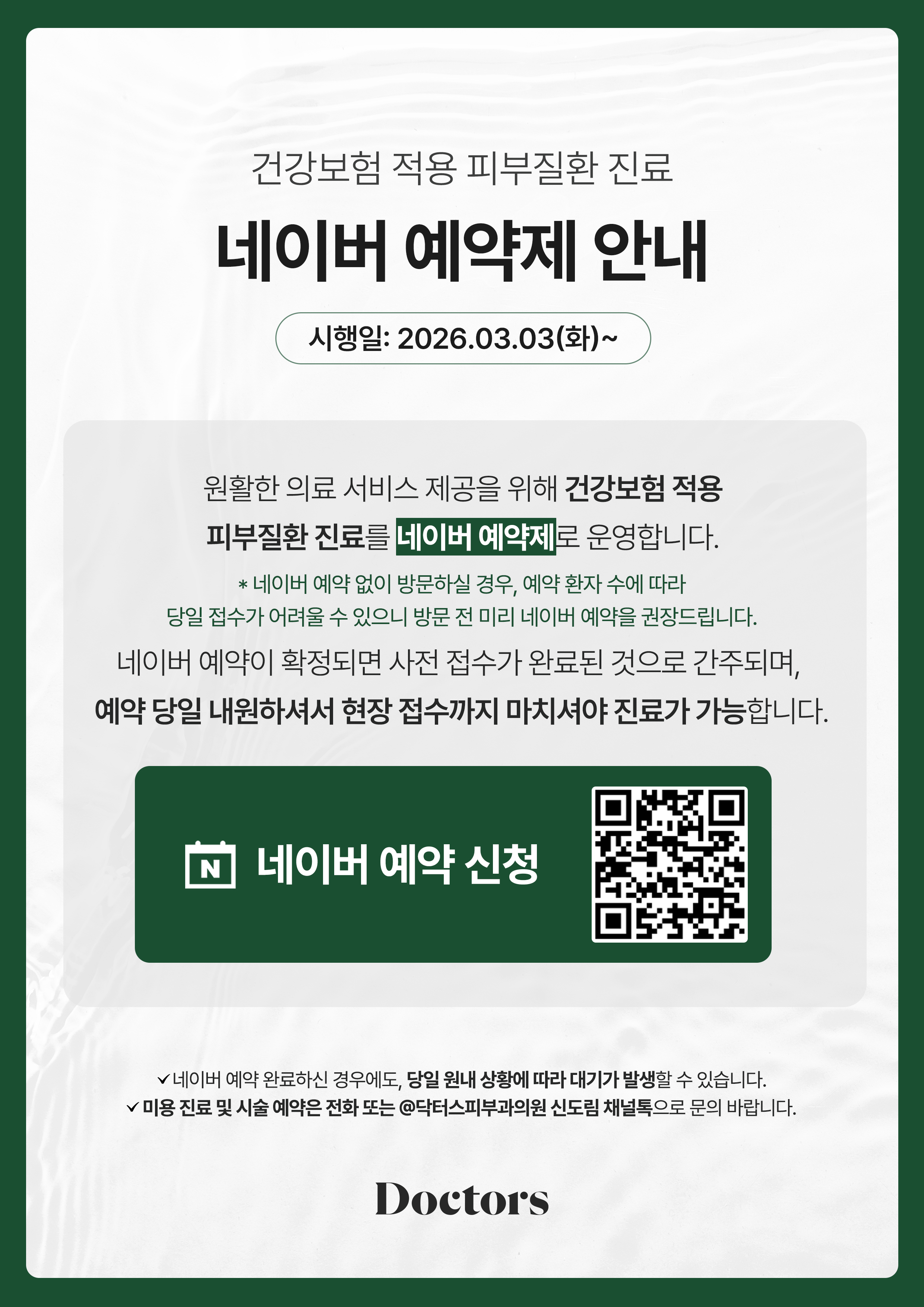 [신도림 닥터스] 건강보험 적용 피부질환 네이버 예약제 안내