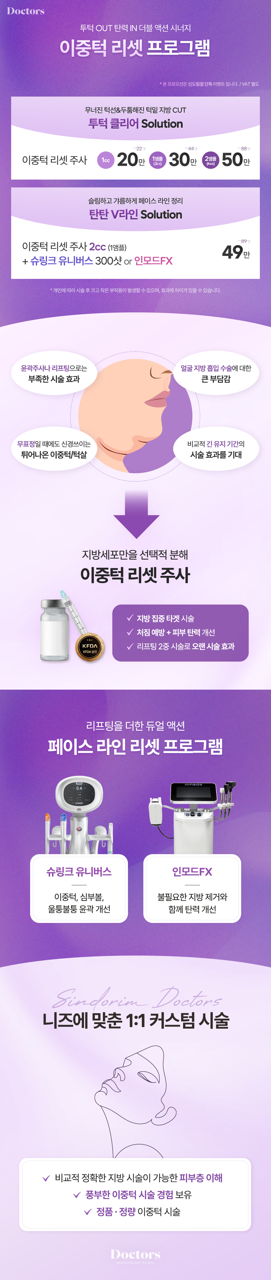 [탄탄 V라인 Solution] 이중턱 리셋 주사 2cc (1앰플) + 슈링크 유니버스 300샷 or 인모드FX